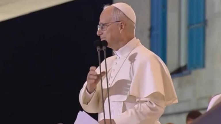 Addressing the youth crowd gathering in Bkerke's squares this evening, Pope Leo XIV began by saying in Arabic, "Peace be with you."