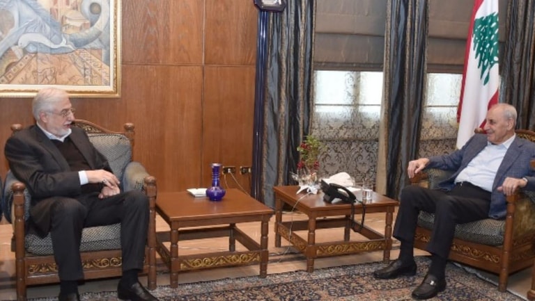 Parliament Speaker Nabih Berri received the Chairman of the Parliamentary Defense, Interior, and Municipal Affairs Committee, MP Jihad Al Samad. at the Second Presidency in Ain el-Tineh.