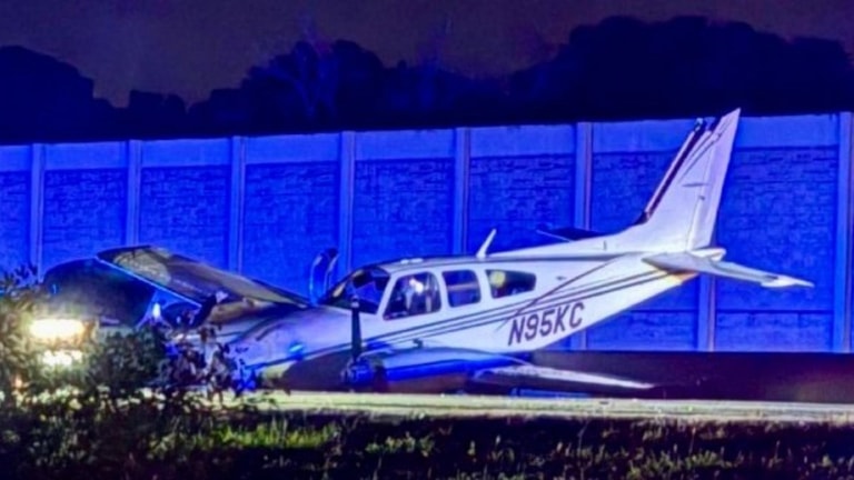A video showed a plane crashing onto a car on Interstate 95 in the city of Cocoa, Florida, injuring the car’s driver.