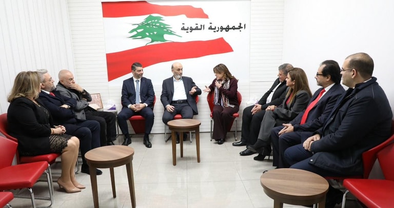 Lebanese Forces Party leader Samir Geagea met Saturday in Maarab with the newly elected head of the Pharmacists Syndicate, Abdel Rahman Merkbawi, accompanied by the elected members supported by the Lebanese Forces.