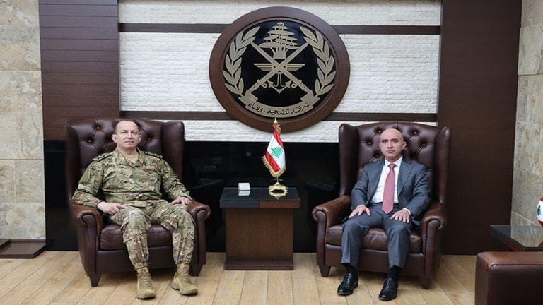 Lebanon’s Army Commander General Rodolphe Haykal, received the Chargé d'Affaires of the Iraqi Embassy in Lebanon, Nada Majoul, at his Yarzeh office,