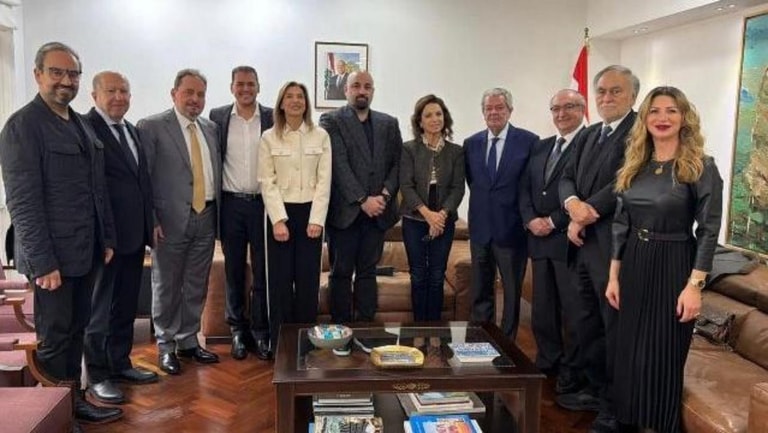 A delegation from the newly elected board of directors of the Lebanese Hotel Owners Syndicate, headed by its president Pierre Achkar, on Friday visited Tourism Minister Laura Lahoud, in her office at the ministry.