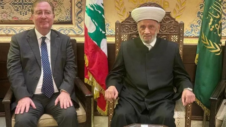 Grand Mufti of the Lebanese Republic, Sheikh Abdul Latif Derian, on Wednesday received British Ambassador to Lebanon, Hamish Cowell, at Dar al-Fatwa.