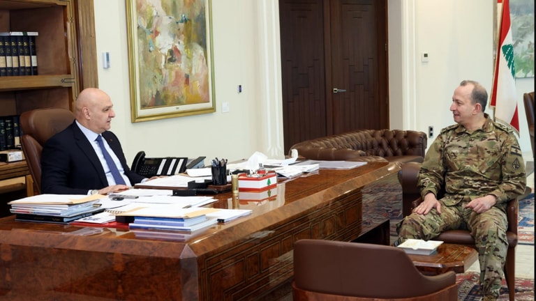 President Joseph Aoun was briefed by Army Commander General Rodolph Haykal on the results of his visit to Saudi Arabia and his participation in the Munich Security Conference