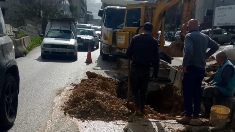 Photo: Roadworks on the Mansourieh Road heading toward Mkalles are causing heavy traffic in the area, and an officer from the Jdeideh Traffic Unit is on site to help manage the flow