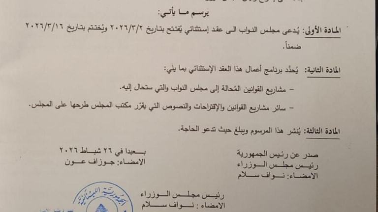 MTV sources: The President of the Republic and the Prime Minister have signed a decree opening an extraordinary session of Parliament from March 2 to March 16