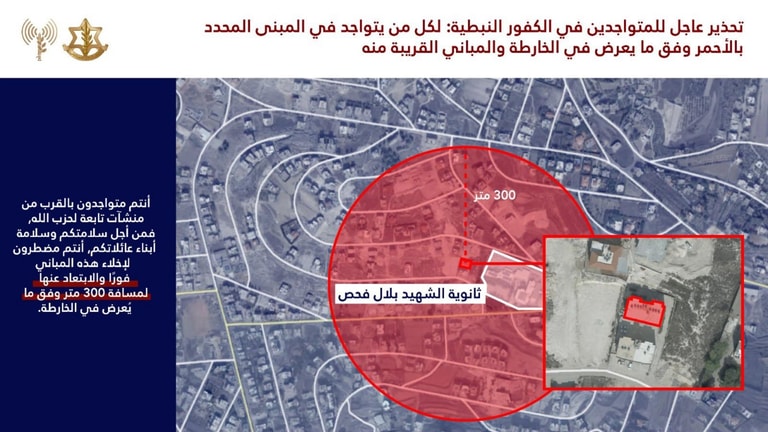 Two Israeli airstrikes have struck the area of Kfar Jouz and the town of Kfour in southern Lebanon after an evacuation order was issued by the Israeli Army