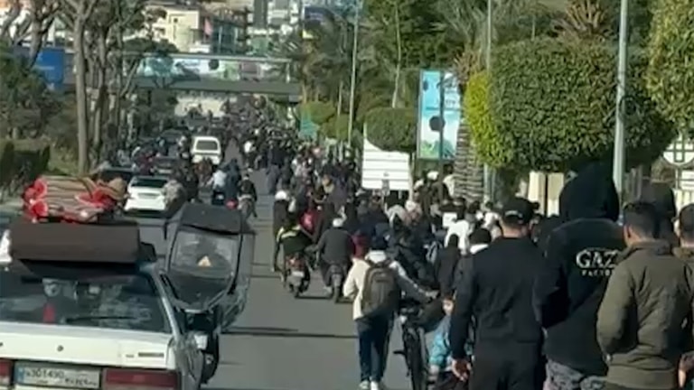 Scenes show mass displacement by car and on foot on the airport road following the Israeli warning to evacuate the entire southern suburbs of Beirut.