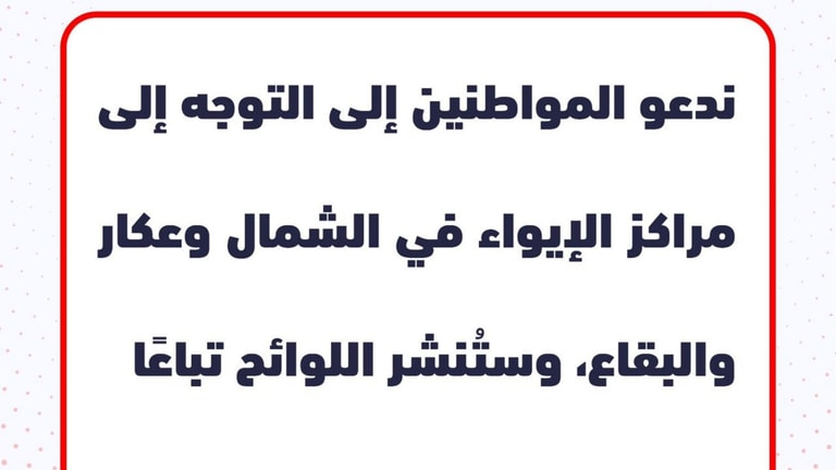 The Prime Minister’s Office published photos of the available shelter centers in northern Lebanon, Akkar, and the Bekaa, calling on citizens to head to them.