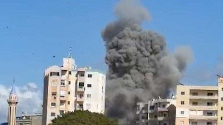 A video circulating online captures the moment an Israeli airstrike hit a previously threatened building in the town of Maachouk, in the Tyre district, sending debris flying into the air.