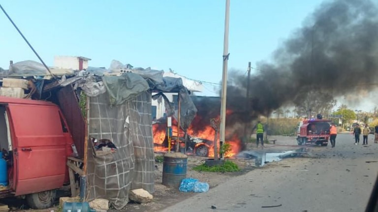 Watch: A car targeted by the Israeli drone on the Qasmiyeh public road