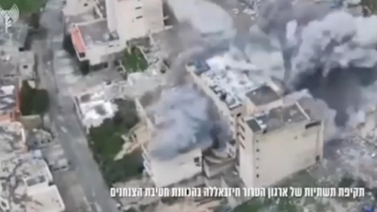 The video shows a building in the upper neighborhood on the eastern side of the city of Bint Jbeil being blown up through explosives rather than an airstrike, indicating that the Israeli army has advanced into a third of the city.