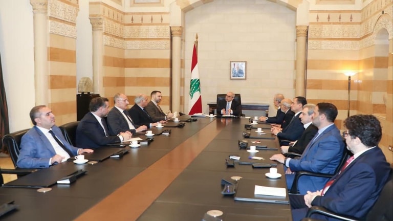 Salam discusses developments with Democratic Gathering delegation