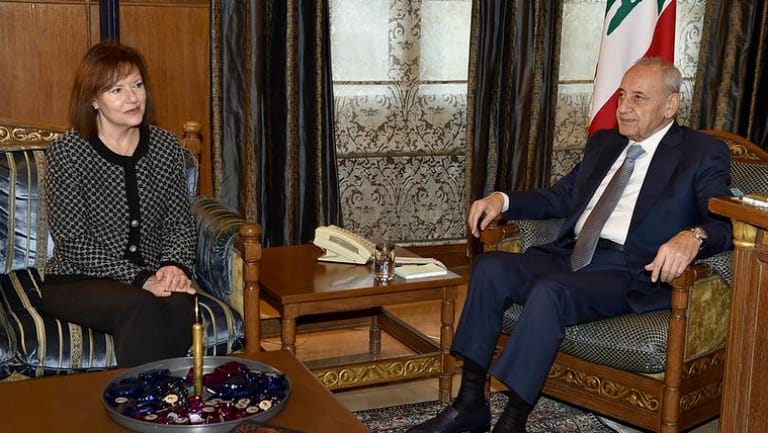 Parliament Speaker, Nabih Berri, on Tuesday welcomed at his Ain El Tineh residence the US Ambassador to Lebanon, Elizabeth Richard, with whom he discussed the general situation.