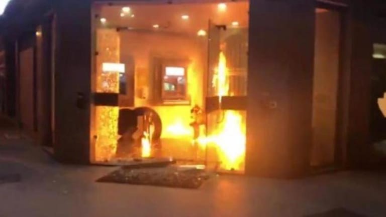A number of young men hurled a fire bomb at the facade of a bank in Ras el-Nabeh locality early at dawn on Tuesday.