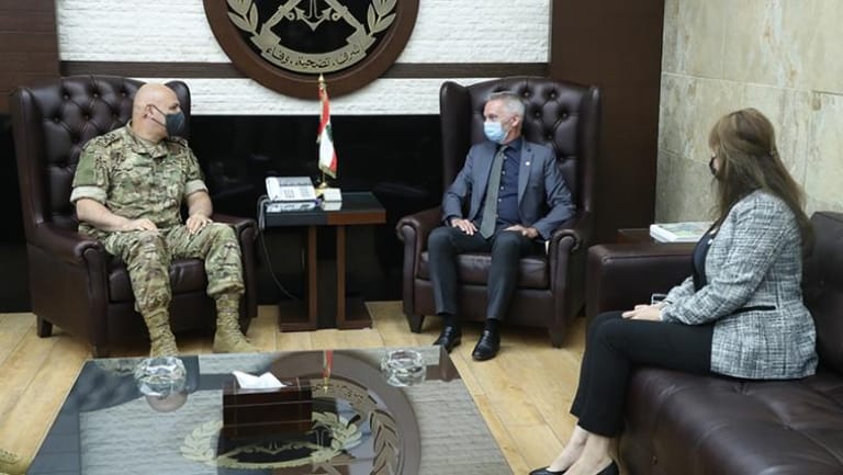 Army Commander, General Joseph Aoun, received on Wednesday at his Yarzeh office the Head of the International Committee of the Red Cross (ICRC) delegation to Lebanon, Christophe Martin, with talks reportedly touching on the means to bolster joint cooperation between the two institutions.