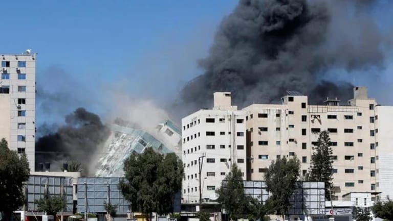 Gaza tower housing AP, Al Jazeera collapses after missile strike