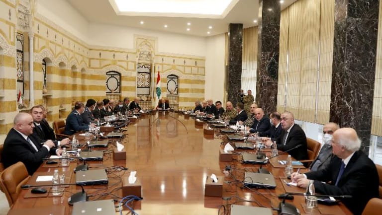 “The Higher Defense Council convened, today at the Presidential Palace, in a session chaired by President of the Republic, General Michel Aoun, and attended by the Prime Minister, a number of ministers, heads of security apparatuses, and the government’s delegate to the military court.