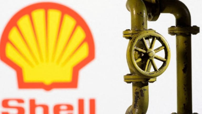 A 3D printed natural gas pipeline is placed in front of displayed Shell logo in this illustration taken February 8, 2022. REUTERS/Dado Ruvic/Illustration/