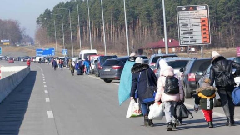 Ukrainian media published a video showing a queue in front of a bakery in Mykolaiv, Ukraine.