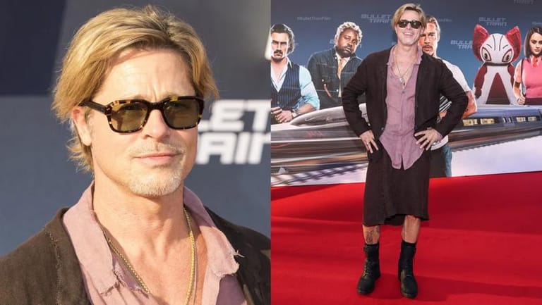 Fans praised the Fight Club actor for “normalising” men wearing skirts after he walked the Bullet Train red carpet on Tuesday dressed in his monochrome skirt look.