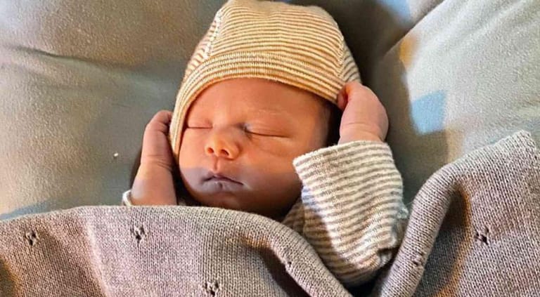 Wright, 32, posted a photo on Instagram of her newborn baby snuggled under a brown knitted blanket and wearing an adorable striped hat.