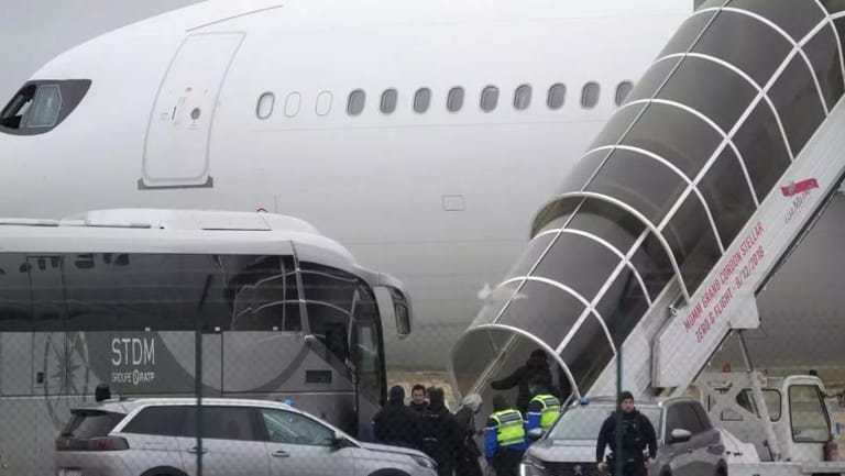 A plane that had been grounded in France for days over concerns its roughly 300 mostly Indian passengers were part of a human trafficking scheme landed in Mumbai early Tuesday.