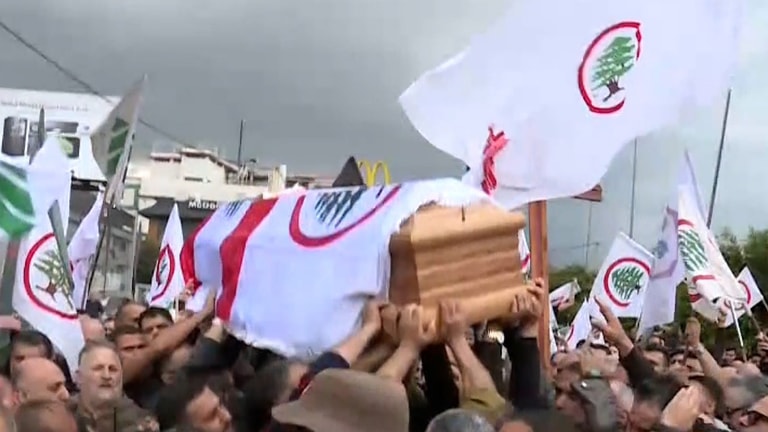 A large crowd gathered in Dora to welcome the body of Pascal Sleiman after the procession arrived.