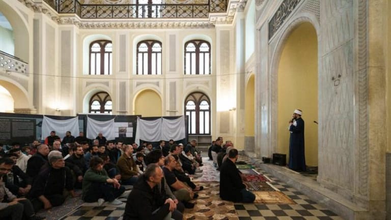 Around 100 people attended prayers at the Yeni Mosque, last used in this capacity in the early 1920s, before a war between Greece and Turkey led to a population exchange that whittled away the city's Muslim population.