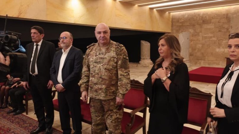 Army Commander, General Joseph Aoun, offered his condolences to the family of Pascal Sleiman at St. George's Cathedral in Beirut.