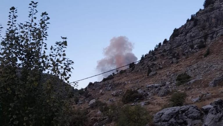 A missile fell in the Al-Wardiyat area between Almat and Ehmej in the Jbeil district, in a rocky, uninhabited area, with no injuries reported.