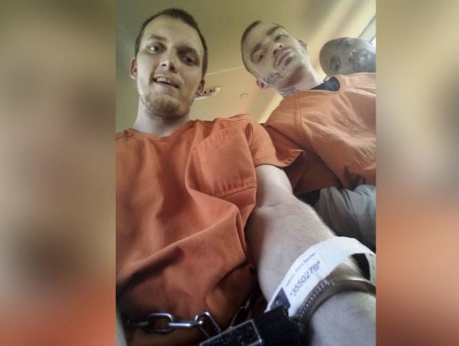 One image posted to his Facebook account is captioned: “Go hard all day.” It shows him alongside two unidentified prisoners, one man sporting a number of tattoos on his face.
