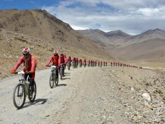The Gyalwang Drukpa also participates in the bicycle journeys, riding with the nuns as they pedal through treacherous terrain and hostile weather and camp out in the open.