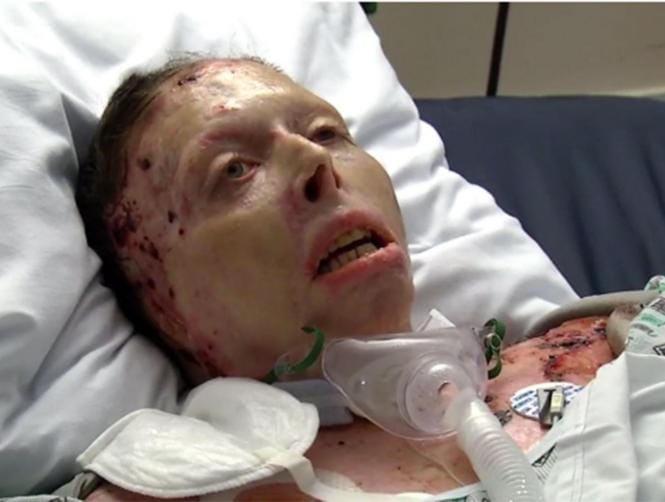She has severe burns over 90 per cent of her body and lost facial features, her ears and some of her fingers. Large wounds on her back and buttocks have failed to heal and remain open, while Ms Malinowski is immobile and cannot breathe without the help of a ventilator.