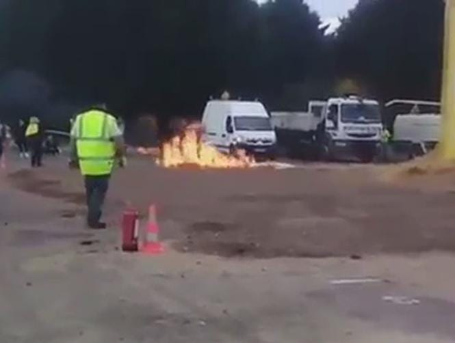Video posted on social media showed the bonfire blowing up seconds after being ignited, sending debris flying.
