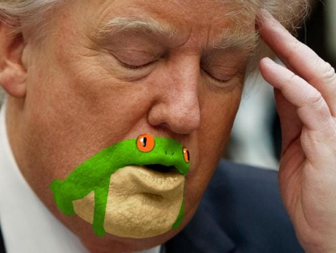 Mike Mitchell made the genius observation that Trump's chin and mouth looks like a frog.