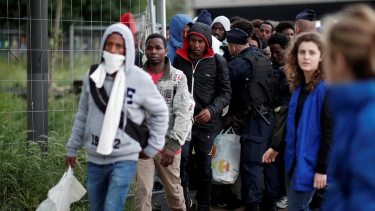 Reuters Television pictures showed scores of migrants, from the "Millenaire" camp next to a canal in northeast Paris, waiting to be escorted to temporary accommodation centers. Riot police were also on standby as the evacuation took place.