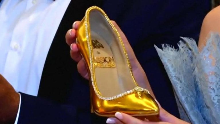 Visitors taking a closer look at what a Dubai-based shoemaker says is the world's most expensive pair of shoes, which has a whopping US$17 million (S$23 million) price tag. Design house Jada Dubai unveiled the pair - gold patent leather stilettos trimmed with sparkling diamonds set on white gold - at the Burj Al Arab hotel in Dubai on Wednesday.