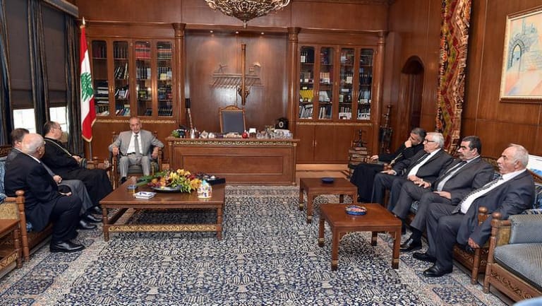 Parliament Speaker Nabih Berri welcomed, at Ain el-Tineh on Wednesday, a delegation from Miyeh Miyeh village, headed by Bishop Elie Bechara Hadad.