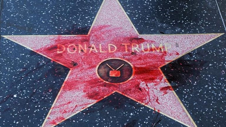 The fake blood and swastikas are hardly the first time Trump's star has made headlines.