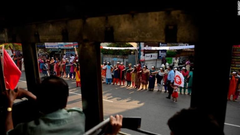 The state government organized the so-called "women's wall" Tuesday, according to CNN affiliate CNN News 18. The chains were formed for about 15 minutes.