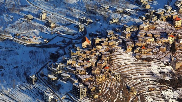 Residents in Bekaa Kafra were filmed commemorating Good Friday under pure white snow, which is highly unusual around this time of year.