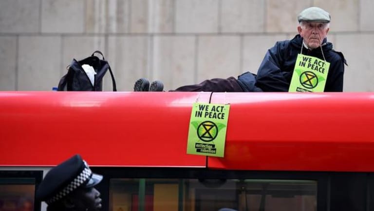 The group advocates non-violent civil disobedience to force governments to reduce carbon emissions and avert what it says is a global climate crisis that will bring starvation, floods, wildfires and social collapse.