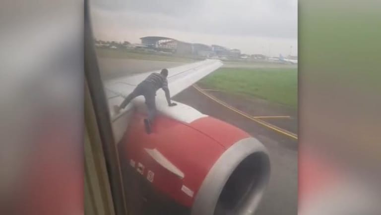 The incident occurred on an Azman Air flight in Lagos, Nigeria. The aircraft was reportedly at a holding bay expecting clearance for take-off when the man was seen climbing onto the wing, according to the News Agency of Nigeria (Nan).