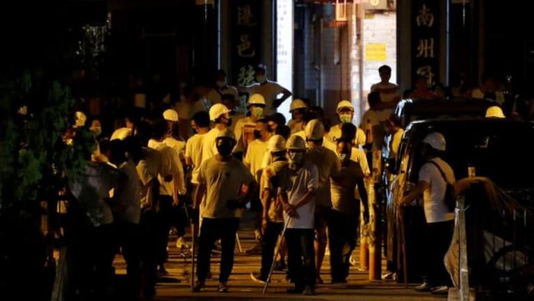 Groups of men in white were seen by eye-witnesses with poles and bamboo staves at a nearby village but Yau said police saw no weapons when they arrived.