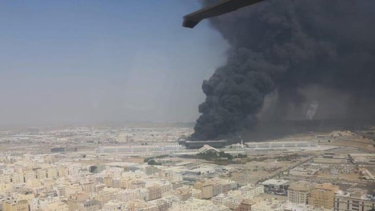 It said civil defense were fighting the fire with air support and many sections of the blaze were under control.