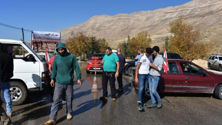 Photo: Aainata-Arz road is blocked by cars to prevent the passage of trucks