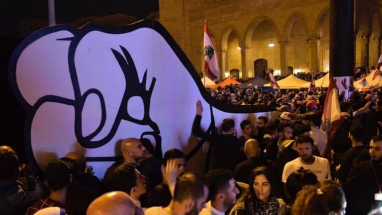 After unidentified people burned the "Fist of the Revolution" on Friday morning, demonstrators raised in the evening the symbolic "Fist" again in Martyrs' Square, in the same place where the first one was burned.