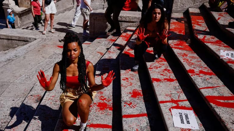 Women's rights activists protested against feminicide on Wednesday by painting Rome's famed Spanish Steps red, symbolically representing the blood of female victims of violence.