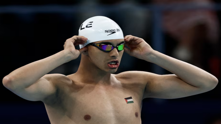 The 24-year-old pointed to a Palestinian flag on his chest as he explained what it meant to represent a homeland not just lacking a pool but struggling for basics like food and water.